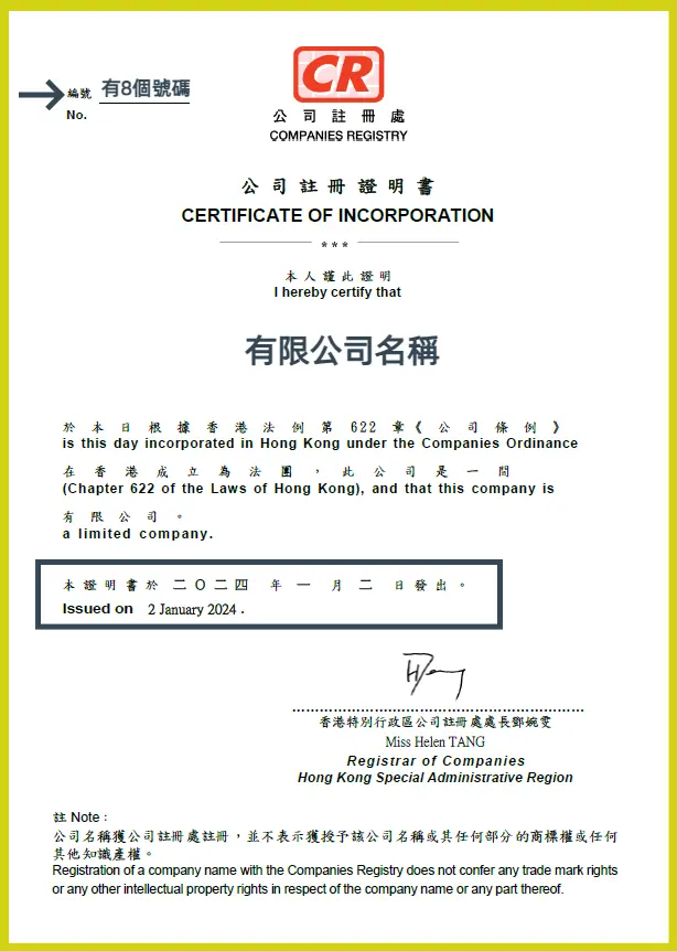 公司註冊證明書發出日期 (即公司成立日期) 是2023年12月27日或以後,公司註冊編號會是8位數字是同商業登記證號碼一樣。