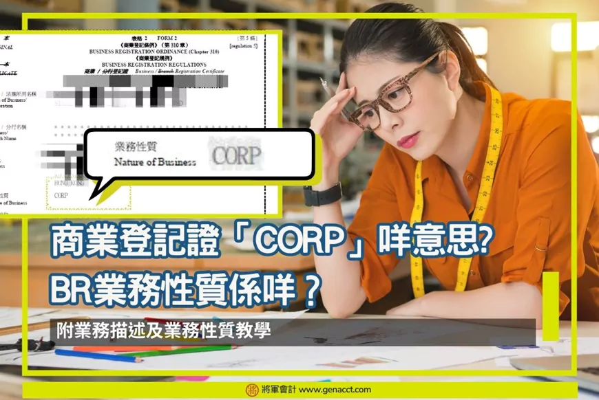 本文分享商業登記業務性質「CORP」的意思和原因,逐步教你更改BR業務性質「CORP」和商業登記通知開業方法,更了解BR業務性質選擇方法。